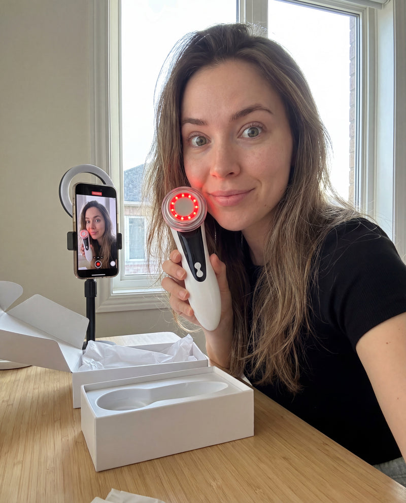 Der Cleanly GlowLift Pro™ kombiniert sanfte Vibrationsmassage & Rotlicht-Therapie – für strahlendere, gepflegtere Haut. Direkt zu Hause. Ohne Salon.